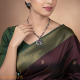 Peacocks are know for its grace and beauty and the same has been splendidly handcrafted in pure silver and a additional bonus about this necklace is the usage of Navarathna stones which makes it match any color attire.
