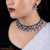 All the glory in one , this is one of the best Silver Jewellery 92.5% that everyone should have in their wardrobe, as these are beautifully handcrafted with all the 9 coloured stones (Navaratna) and Guttapusalu (Bunch of rice pearls)