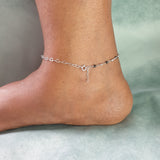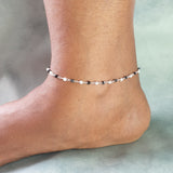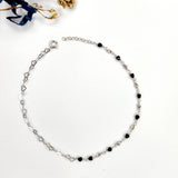 Black Bead Heart Silver Anklet