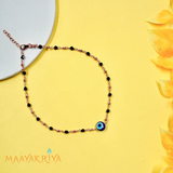 A delicate 18K rose gold-plated 925 silver anklet, adorned with a timeless evil eye charm.