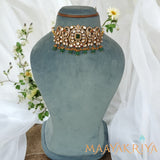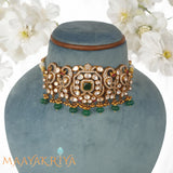 Elevate your outfit with the Mahika Victorian Choker. Adorned with shimmering White Mossanite and Synthetic Green Onyx, this choker exudes elegance and sophistication. Expertly crafted with exquisite detailing, it's perfect for adding a touch of luxury to any occasion.