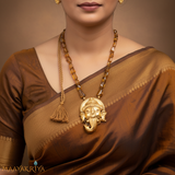 Lord Vishnu on Vinayaka's forehead are shown in this beautiful handmade Nakashi pendant. This is strung with real Topaz stones and reflects temple Jewellery style.
