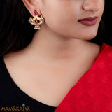 Yali is a mythical creature seen in many South Indian temples, often sculpted onto the pillars. These Yalis have been emossed on 92.5 Silver and finised with Gold polish . The real fresh water pearls hanging at the bottom has added a gorgeous look to these earrings.