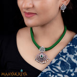 Ramya Padakam (looks like a Rose) designed pendant set has been beautifully handcrafted in 92.5 silver . The white stones used in the shape of the flower is highlighting the pendant and this can be worn with traditional South Indian Attire as well as contemporary attire.