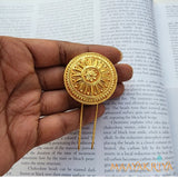 A timeless blend of tradition and elegance, this 92.5 silver hair pin features a classic floral motif with a radiant gold finish. Intricately handcrafted in a circular design, it adds a graceful touch to braids or buns. Perfect for festive occasions, classical dance, or bridal styling.