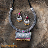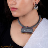 One of the best likings of a women is Gold and Silver Jewellery. This 92.5% Pure Silver Necklace has been enticingly handcrafted with a mix a Gold and Silver which would meet both your needs in one Necklace Set .
