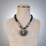 Embrace divine spirituality with the Krishna Nagara Pendant Set, featuring a beautifully crafted standing Krishna figure in the center, gracefully holding his iconic flute. This sacred piece captures the essence of devotion and mythology, making it a meaningful addition to your spiritual jewelry collection. The intricate detailing showcases masterful artistry, honoring the beloved deity with reverence and elegance. Perfect for daily wear or special occasions, this pendant serves as a personal connection to faith and cultural heritage. A treasured keepsake that celebrates Krishna's eternal presence and timeless significance.