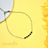 A graceful 925 silver anklet featuring black beads, blending tradition with modern simplicity.