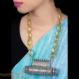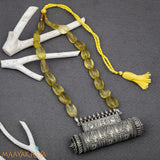 This beautiful handmade Nakashi pendant. This is strung with real LemonTopaz stones and reflects temple Jewellery style.