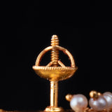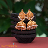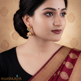 A very unique design with Keerthi Mukha in the Earing the Jhumka which is beautifully handcrafted in Silver and finished in Gold Polish.